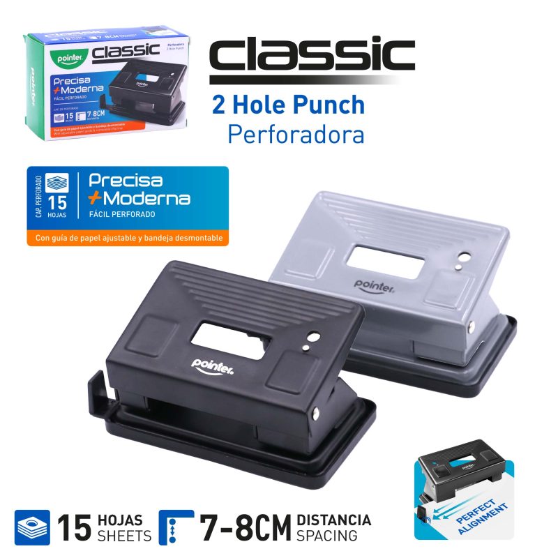 Perforadora Pointer Classic – 2 Orificios | 15 Hojas Pointer
