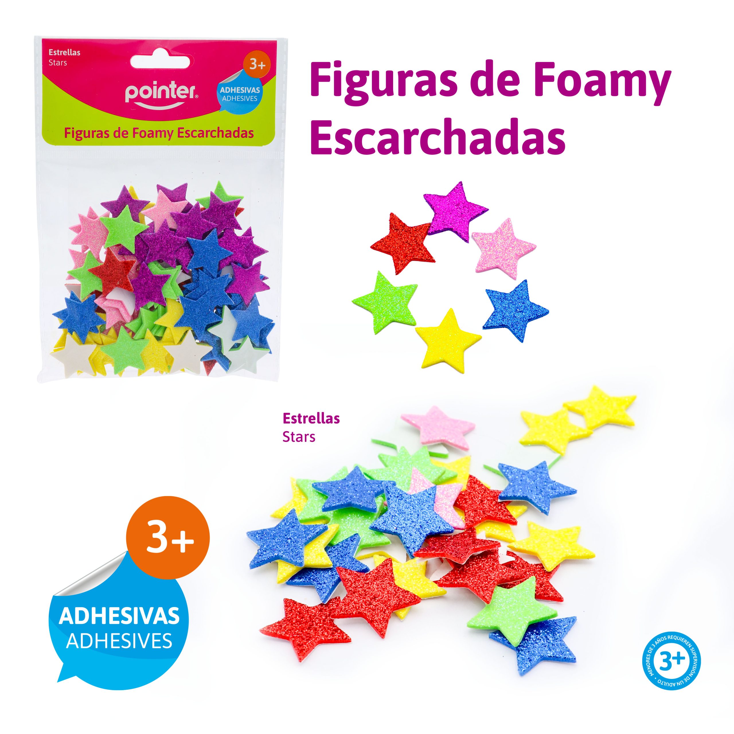 Las Figuras de Foamy Escarchadas Pointer – Estrellas Adhesivas están diseñadas para estimular la creatividad y facilitar el trabajo manual. Fabricadas en foamy ligero con acabado glitter, ofrecen una textura suave y flexible que se adapta a múltiples superficies.