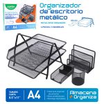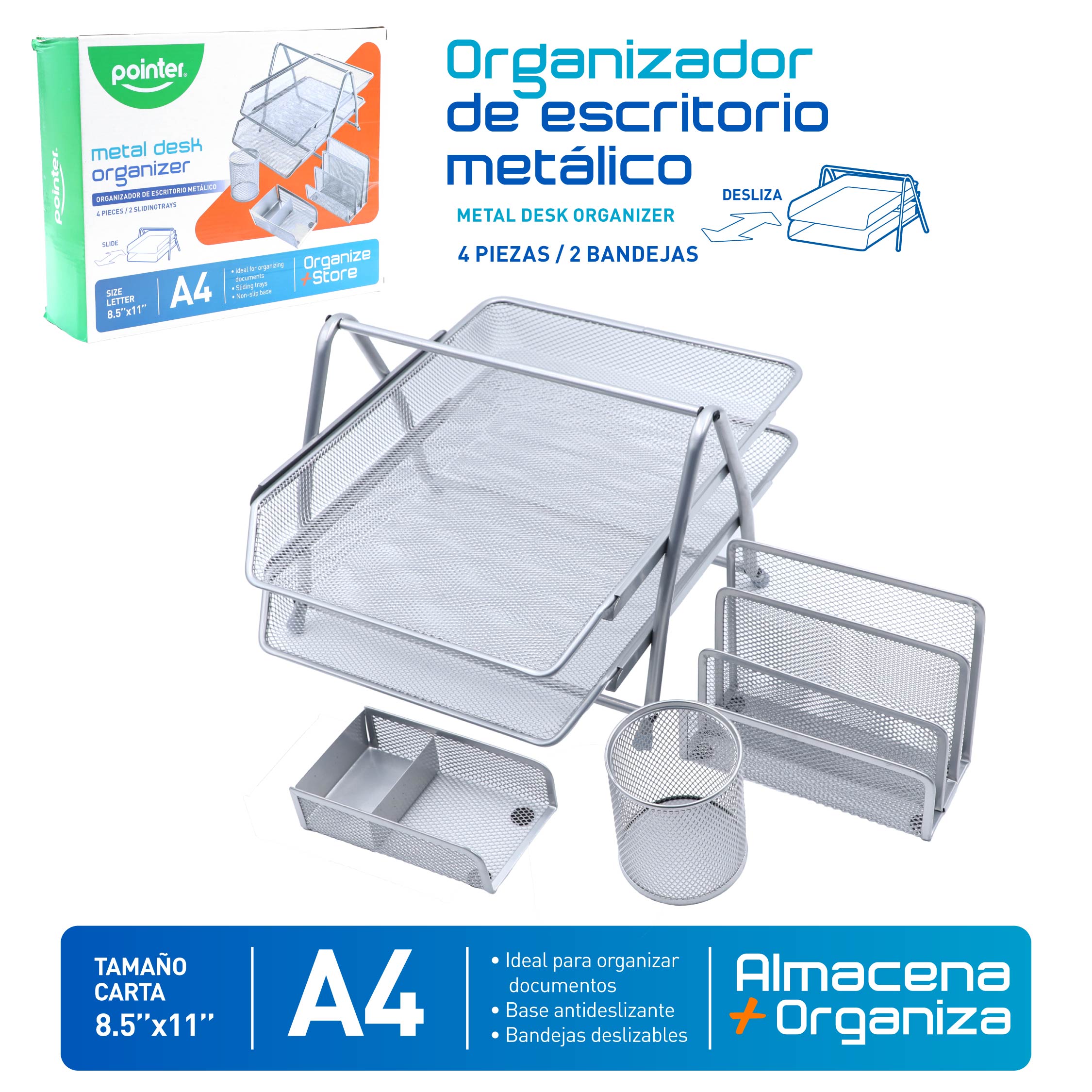 Organizador de Escritorio Metálico Pointer – Set A4 Plata con 4 Piezas Pointer